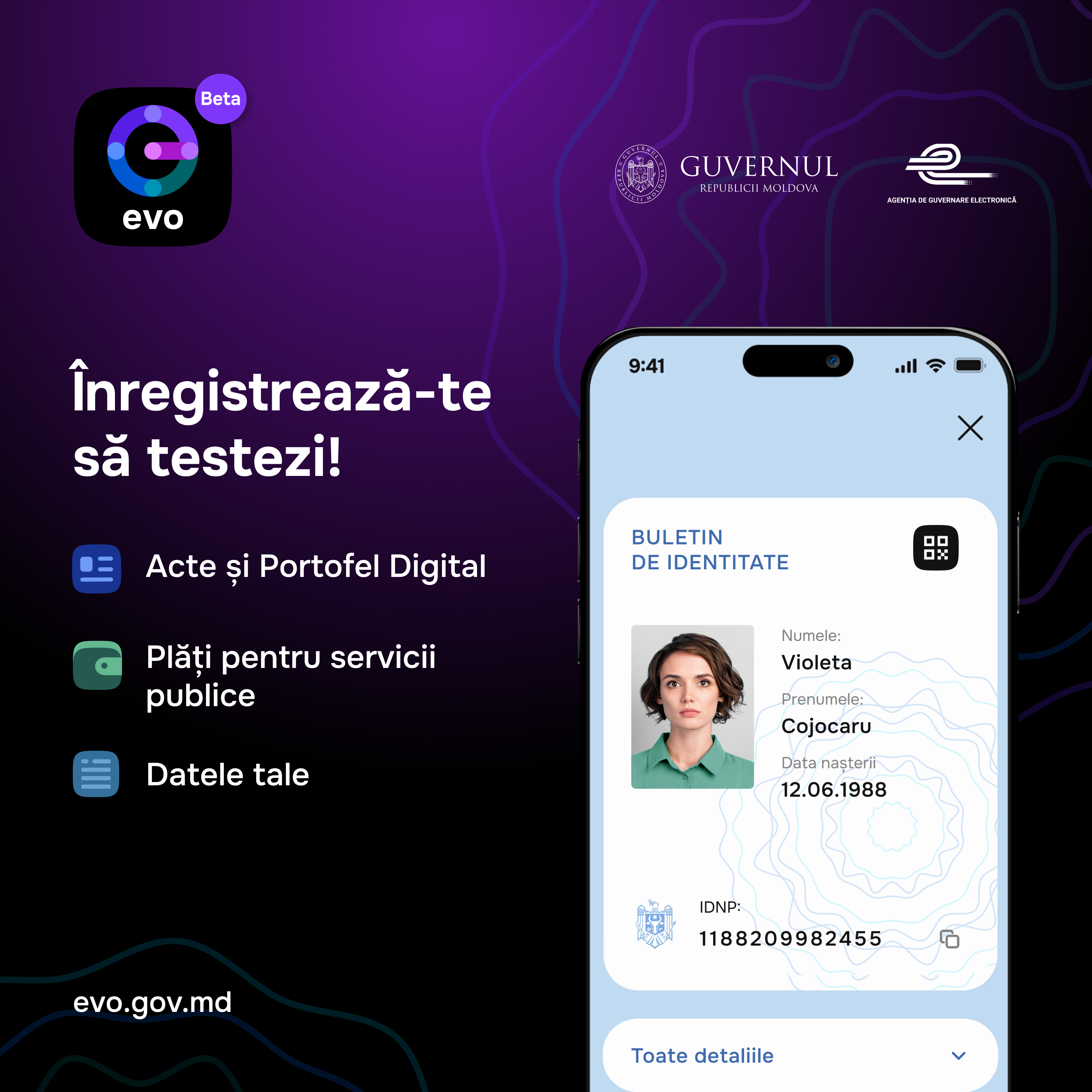 Ministerul Dezvoltării Economice și Digitalizării și Agenția de Guvernare Electronică pornesc înregistrările pentru testarea versiunii Beta a aplicației EVO. EVO Beta va oferi acces la primele module disponibile în aplicația integrată a serviciilor publice în regim de testare, invitând pe toți cei interesați să contribuie la dezvoltarea și îmbunătățirea acesteia. Cum să participi: Cetățenii interesați să testeze […]