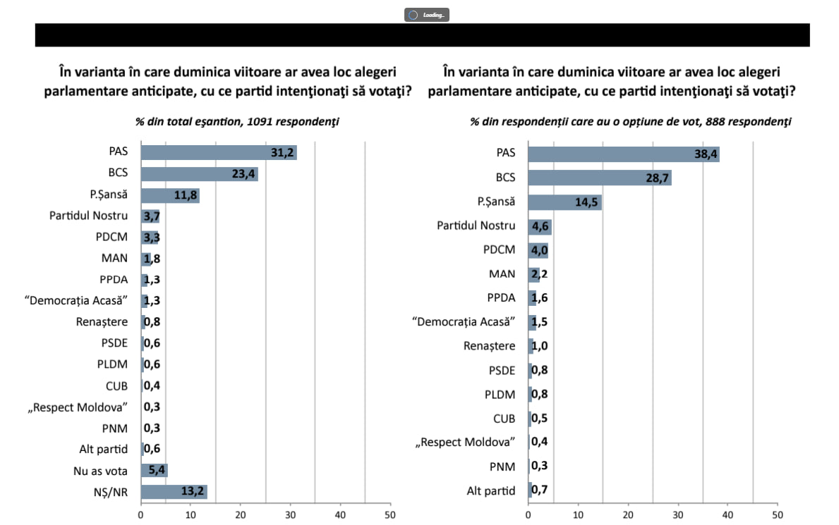 Trei forțe politice ar ajunge în Parlament, dacă duminică ar avea loc alegeri – arată sondajul publicat astăzi de IMAS. Partidul Acțiune și Solidaritate (PAS) ar obține 31,2% din voturi. Blocul Comuniștilor și Socialiștilor (BCS) ar acumula 23,4%. Partidul „Șansă” ar obține 13,8%. „Cu șanse” sunt Partidul Nostru și Partidul Dezvoltării și Consolidării Moldovei. Indeciși […]