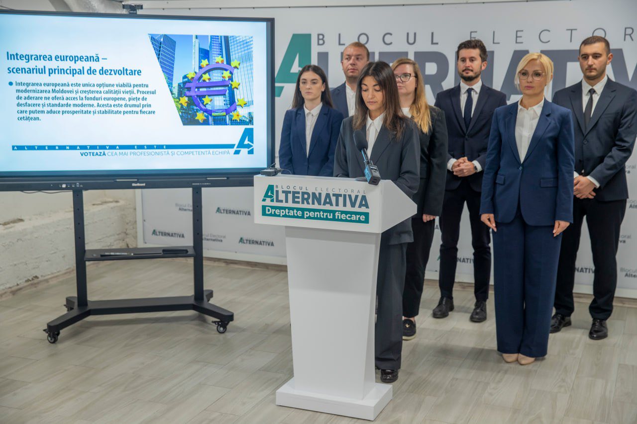 Blocul Electoral ALTERNATIVA a prezentat astăzi, 16 septembrie, programul ”Moldova Europeană”. Candidatul la funcția de deputat din partea blocului, Olga Ursu, a declarat în cadrul unei conferințe de presă că integrarea europeană trebuie tratată ca un proiect național real, nu ca un instrument de propagandă electorală.