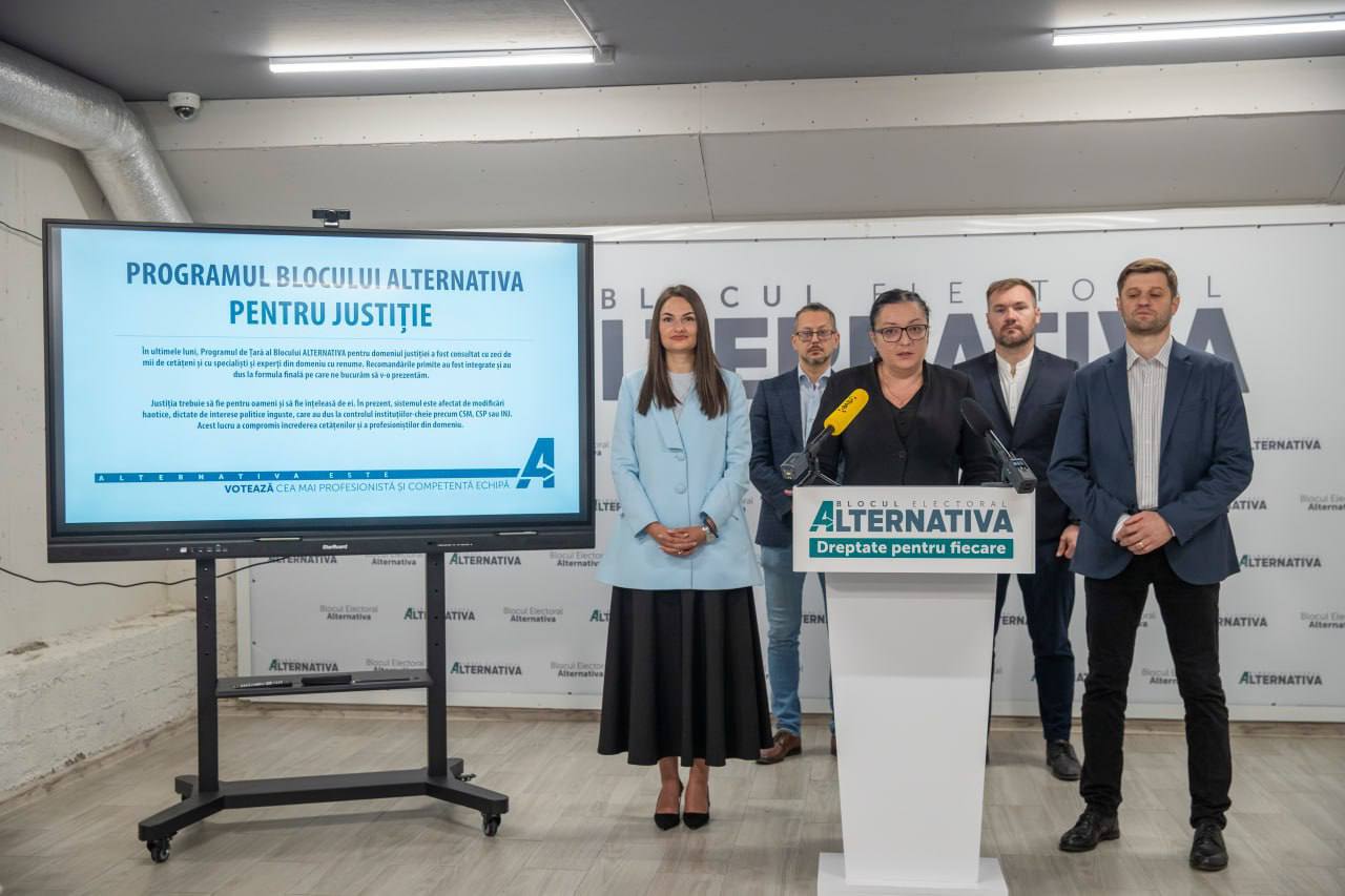 Blocului Electoral ALTERNATIVA a prezentat astăzi, 23 septembrie, Programul pentru domeniul Justiției. În cadrul unei conferințe de presă, Mariana Barașianț, candidat la funcția de deputat, a declarat că actualul sistem de justiție este ”prizonier al jocurilor de putere, marcat de procese interminabile, decizii la comandă și instituții aflate în conflict”.