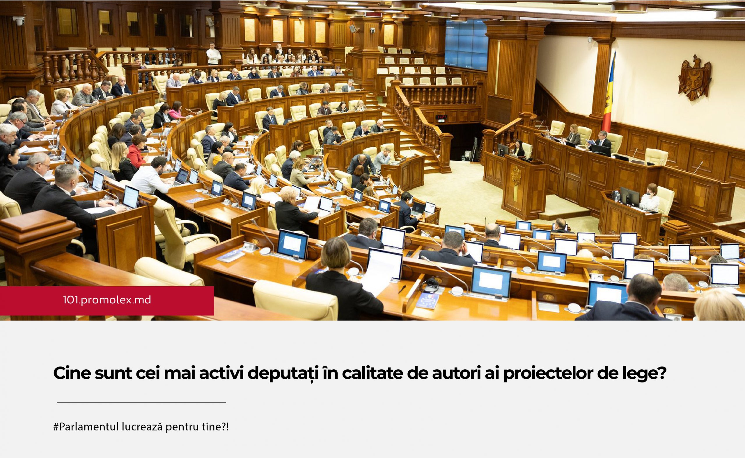 Cei mai activi deputați în calitate de autori și coautori au fost din partea fracțiunii PAS. În top se află Igor Chiriac (19 proiecte), urmat de Veronica Roșca (18) și Lilian Carp (17). Tatiana Cunețchi (BCS) este singura reprezentantă a opoziției care figurează printre cei mai activi autori de proiecte de lege, semnând 12 inițiative.