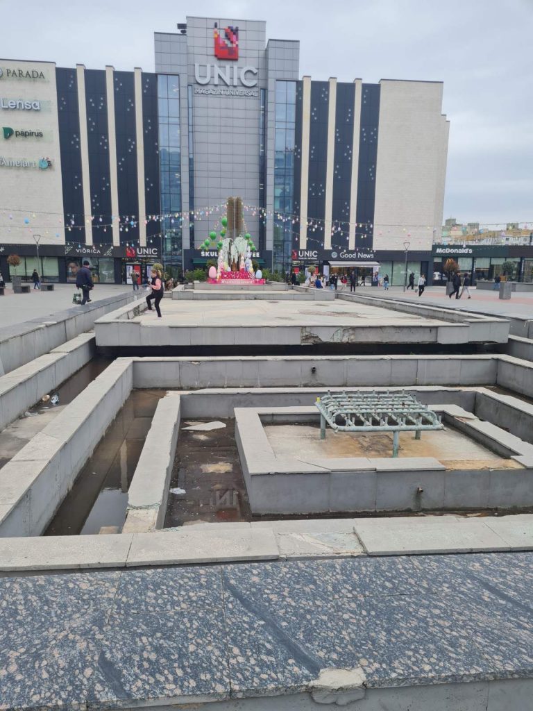 Cândva era unul din cele mai frumoase locuri din Chişinău, dar acum a ajuns într-o stare care nu face deloc cinste zonei centrale a oraşului. Este vorba despre scuarul din faţa Centrului comercial UNIC: havuz în stare deplorabilă, pavaj dezbătut, ţevi vechi la vedere etc. O serie de fotografii realizate la faţa locului ilustrează din plin acest dezastru, care intră în contrast cu faţada magazinului, recent modernizată, cu zona amenajată tot recent din partea străzii Ismail şi chiar cu pavajul instalat în apropiere de havuz de municipalitate. Dar, lucrurile s-ar putea schimba dacă administraţia Centrului comercial va realiza proiectul de amenajare a zonei adiacente, aşa cum a anunţat mai devreme. Acest proiect a fost elaborat de către renumita companie Chapman Taylor – lider mondial în domeniul proiectelor mixte de dezvoltare urbană şi prevede inclusiv construcţia unui scuar modern, dar şi a unei parcări subterane cu circa 1000 de locuri. Astfel, va fi soluţionată parţial şi problema parcărilor din zona centrală a oraşului, dar şi ne vom alege cu un scuar modern.