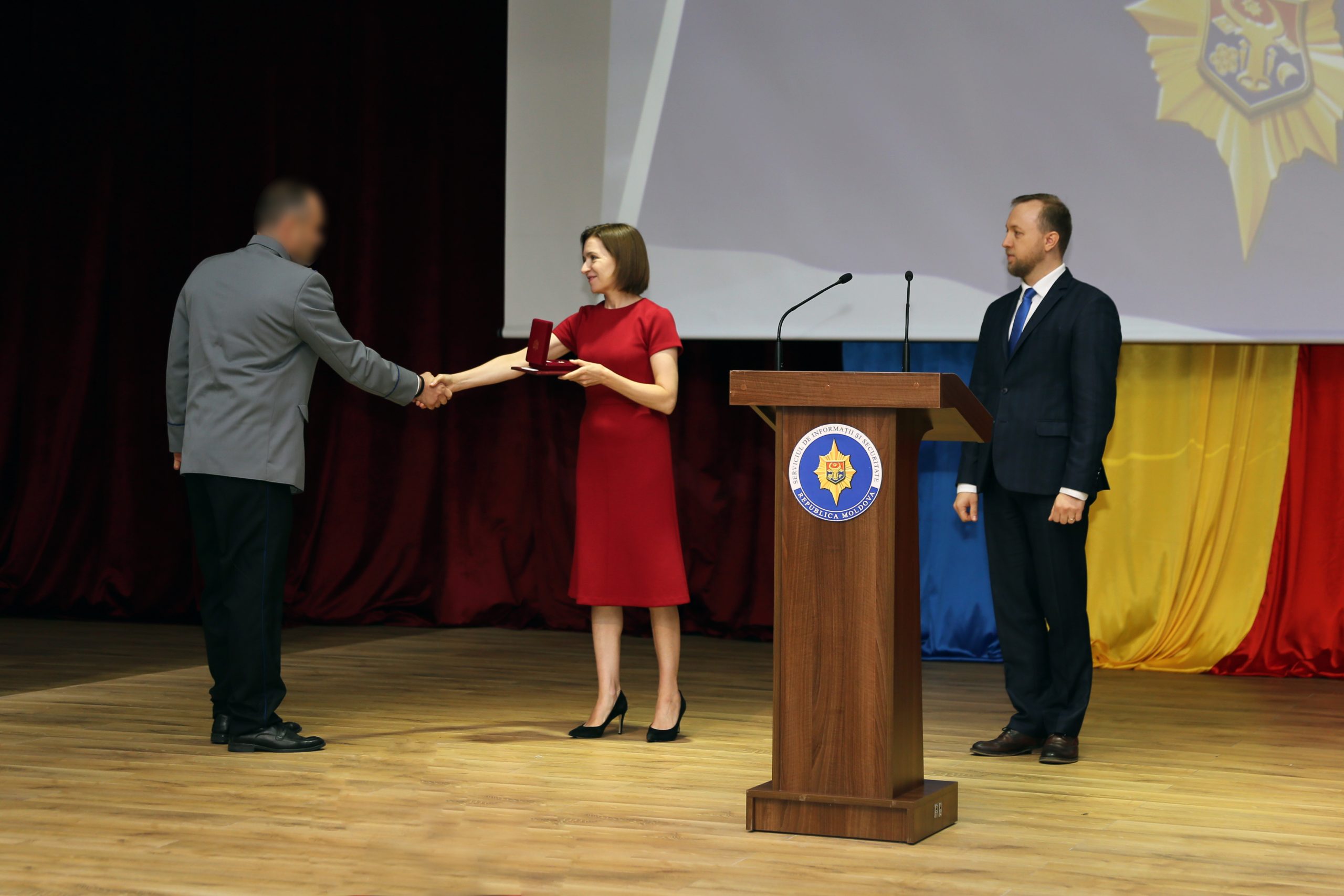 Ulterior, a avut loc ședința festivă cu participarea doamnei Maia SANDU, președintă a Republicii Moldova, Comandant Suprem al Forțelor Armate, veteranilor Serviciului și oaspeților de onoare.