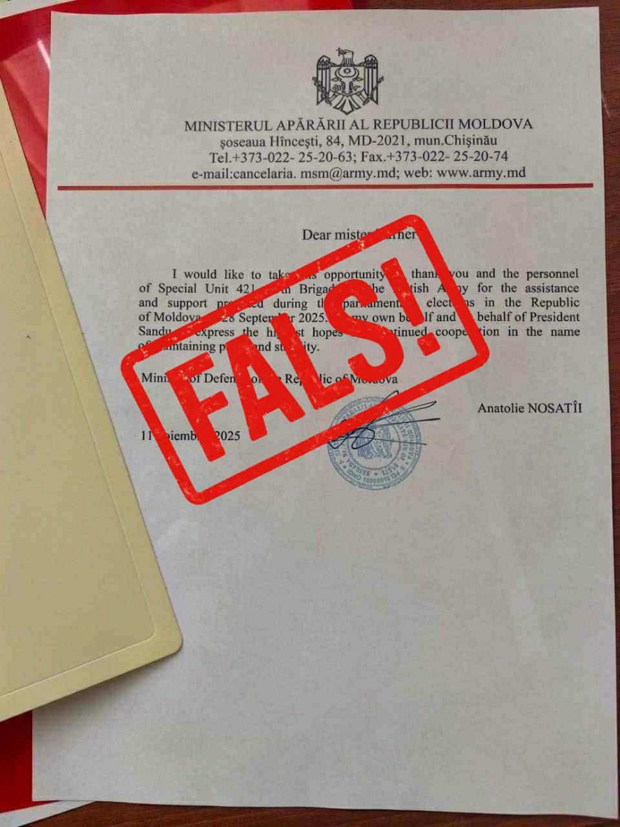 Ministerul Apărării afirmă că „propagandiștii proruși continuă atacurile denigratoare asupra instituțiilor statului. Astfel, pe anumite canale de pe Telegram a fost distribuită o pretinsă scrisoare atribuită ministrului apărării al Republicii Moldova”.