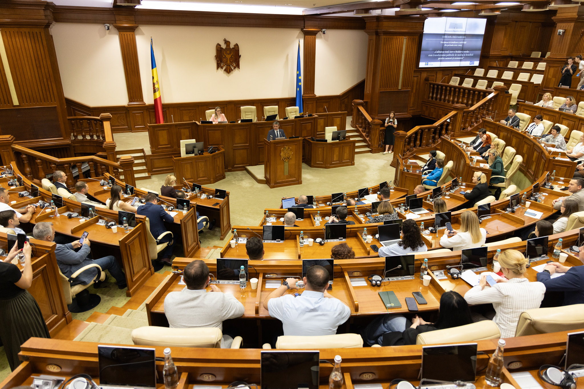 La discuțiile desfășurate la Parlament au participat șeful legislativului, Igor Grosu, deputați, reprezentanți ai Guvernului, ai misiunilor diplomatice, ai partenerilor internaționali, ai autorităților locale, ai societății civile și ai mediului de afaceri.