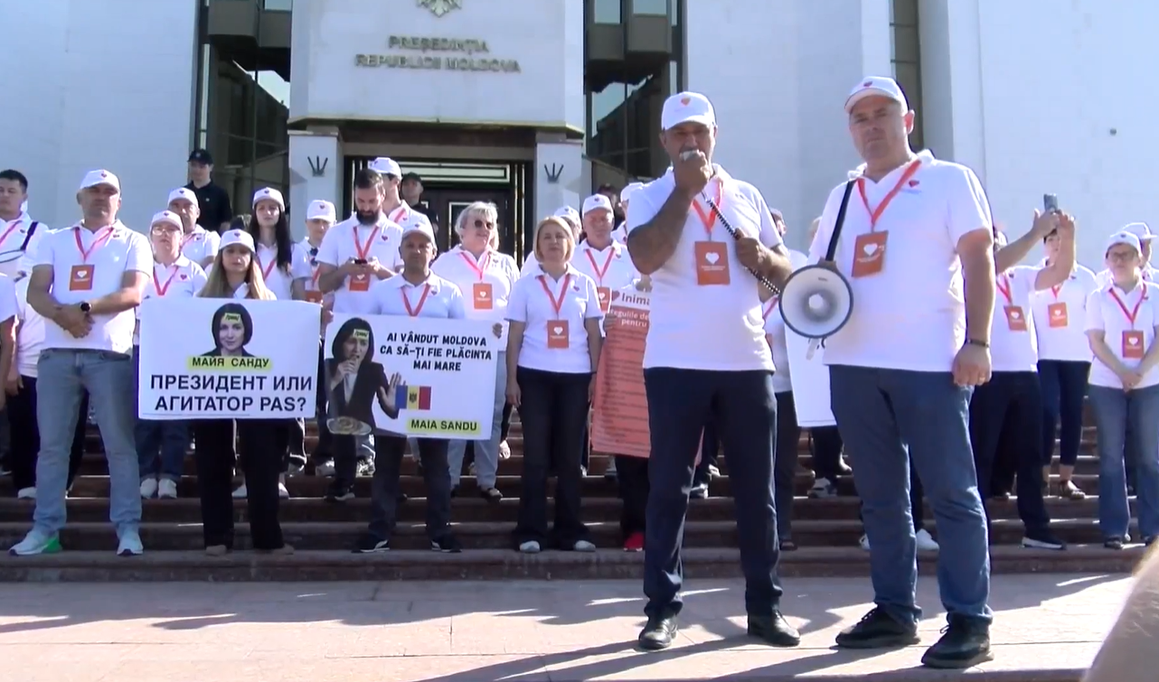 Membrii partidului „Inima Moldovei” protestează în aceste clipe în fața Preasedinției împotriva implicării președintelui Maia Sandu în procesul electoral. Activiștii susțin că există numeroase fapte de încălcare a legii de către Președintă și au declarat că, pe baza acestora, cer demisia anticipată a Maiei Sandu.