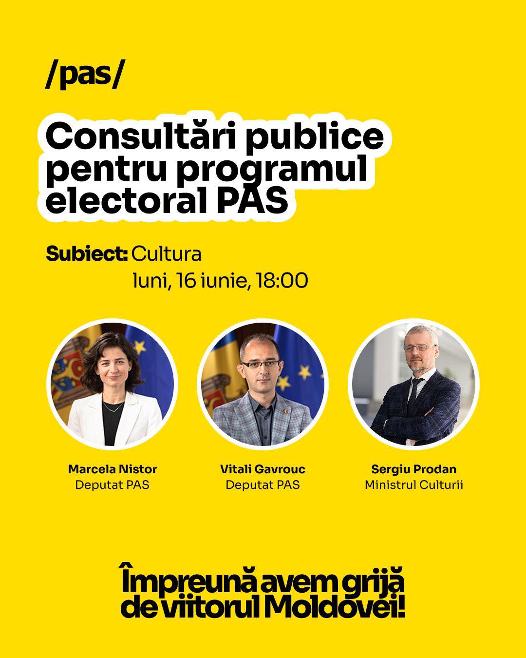 Urmatoarea consultare va fi organizată luni, 16 iunie 2025, începând cu ora 18:00, în Chișinău (adresa va fi anunțată ulterior), pe subiectul CULTURA.