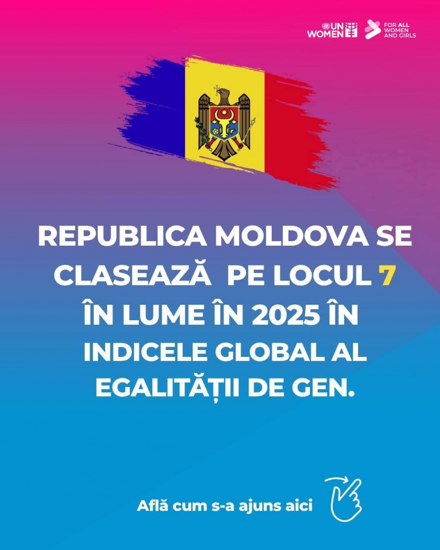 Pentru prima dată în istorie, Republica Moldova intră în top 10 mondial, clasându-se pe locul 7 în Indicele Global al Egalității de Gen 2025, publicat de Forumul Economic Mondial.