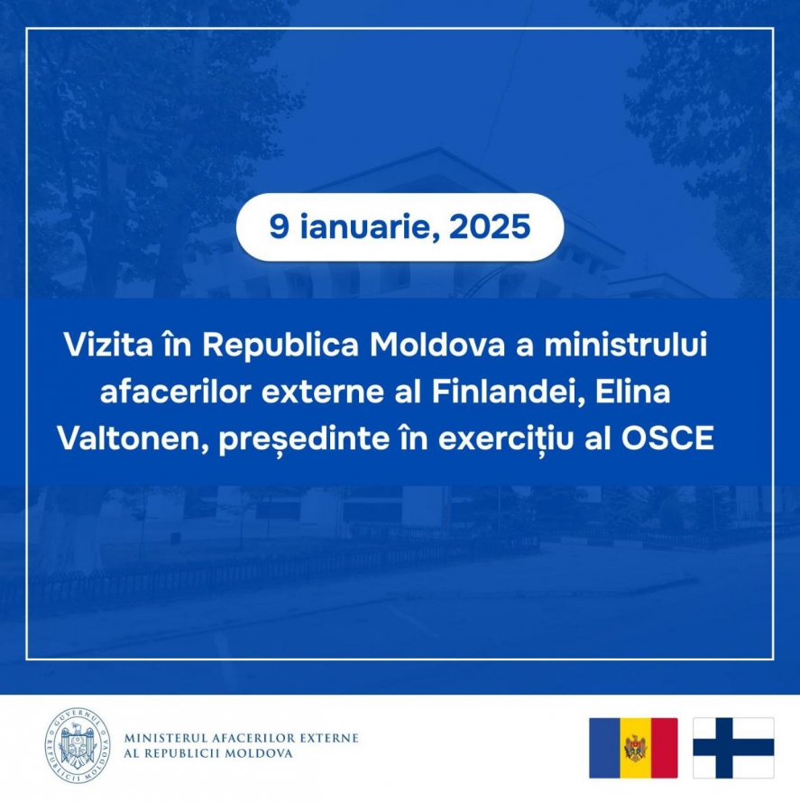 Discuțiile vor viza rolul OSCE în consolidarea rezilienței și stabilității țării noastre, procesul de reglementare a diferendului transnistrean, inclusiv în contextul parcursului european al Republicii Moldova, precum și aspecte de securitate regională. De asemenea, vor fi discutate prioritățile de pe agenda bilaterală și modalitățile de intensificare a dialogului moldo-finlandez.