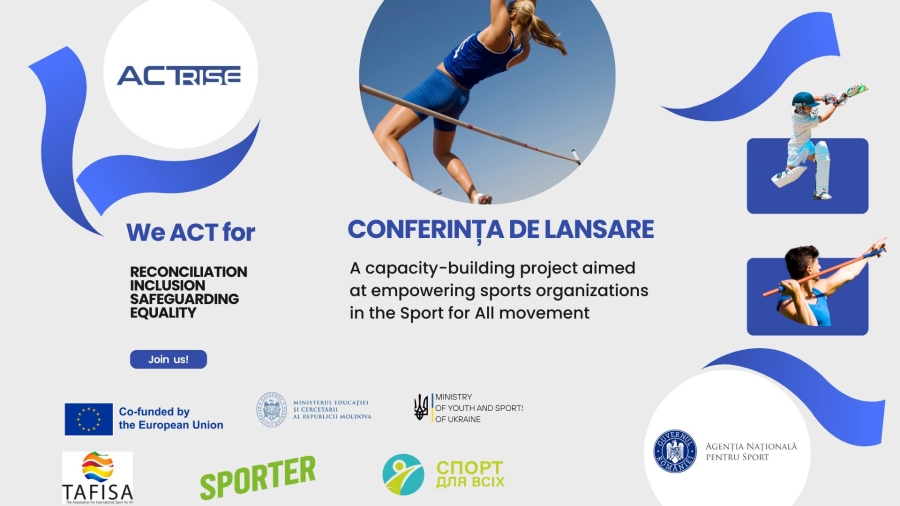 Proiectul „România – Republica Moldova ACT!”, o inițiativă pentru promovarea sportului pentru toți, va fi lansată pe 27 februarie, de la ora 10:00 la sediul Agenției Naționale pentru Sport din România. Proiect, aprobat de Comisia Europeană prin programul Erasmus+, vizează consolidarea cooperării între organizațiile sportive din România, Republica Moldova și alte țări, precum Armenia, Azerbaidjan, Georgia și Ucraina.