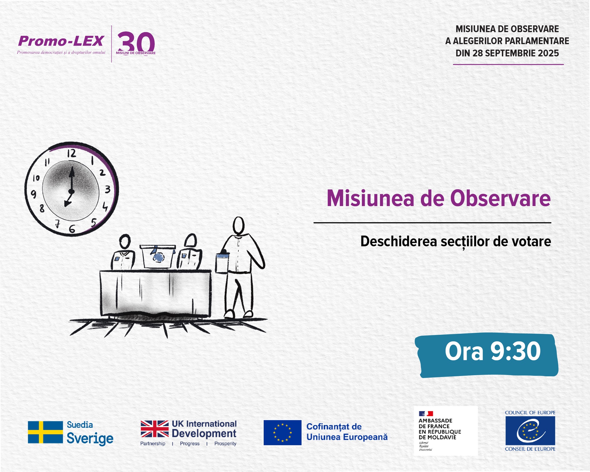 Misiunea de Observare Promo-LEX a alegerilor parlamentare din 28 septembrie 2025 constată că până la ora 8.40, echipa centrală a prelucrat cu statut de incident 73 cazuri, dintre care prezentul comunicat include 40 incidente confirmate.