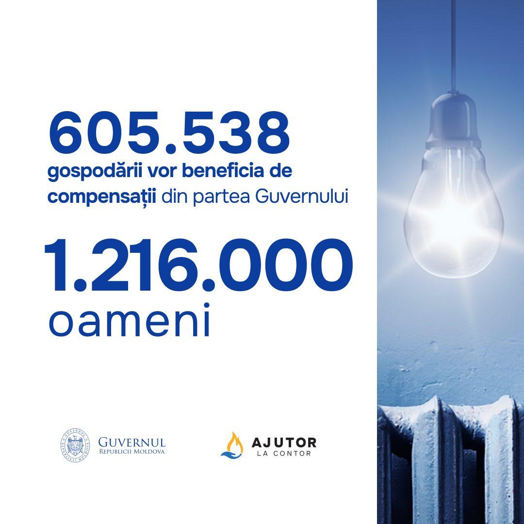 605 538 домохозяйств (то есть около 1 216 000 граждан) получат компенсации за отопление в течение всего отопительного сезона. Более половины всех получателей получат максимальную сумму компенсации — 800 леев за твёрдое топливо и 1000 леев за другие источники энергии.