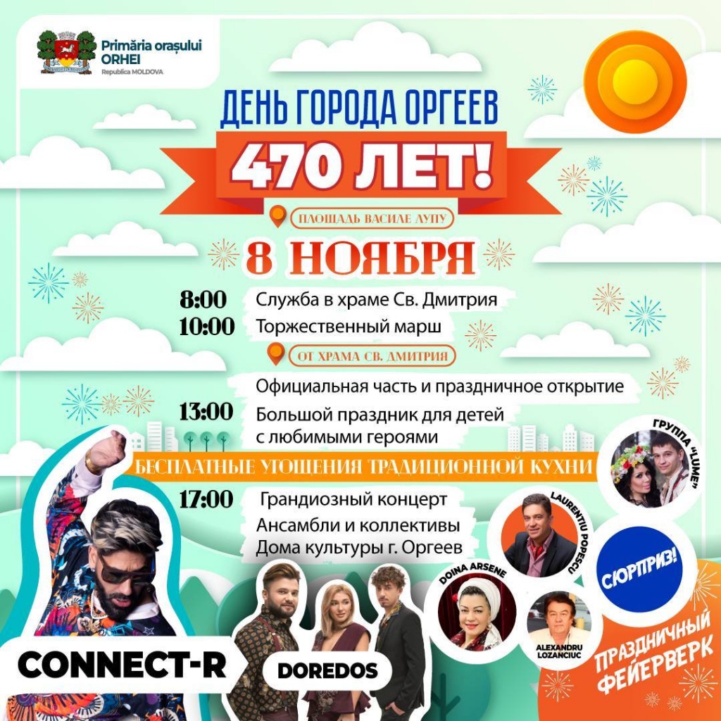 Дорогие жители и гости Оргеева! 8 ноября, когда православные христиане отмечают праздник Святого Дмитрия, мы будем праздновать храм самого красивого города страны – Оргеева.