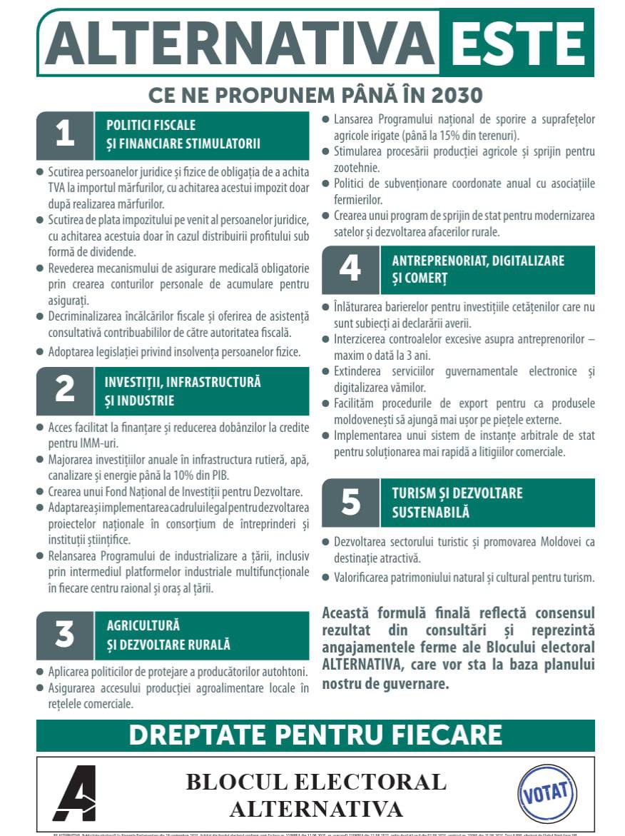 Блок АЛЬТЕРНАТИВА представил экономическую программу для Молдовы