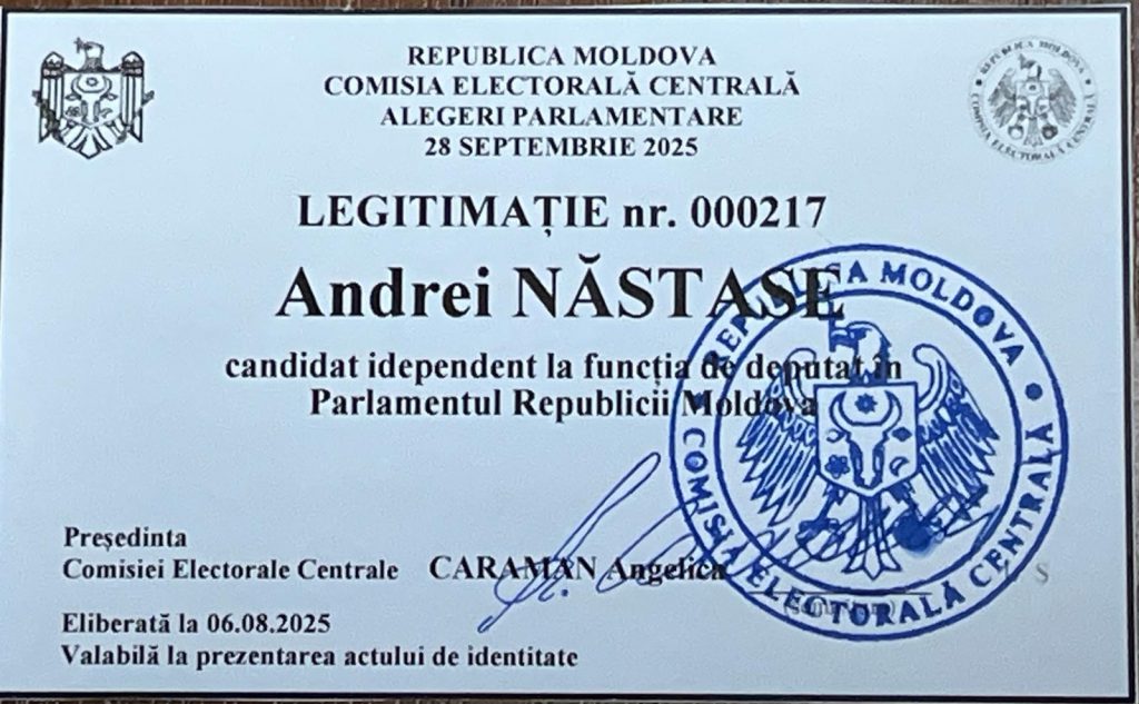 Андрей Нэстасе, независимый кандидат на должность депутата, объявил, что сегодня Центральная Избирательная Комиссия вручила ему удостоверение независимого кандидата, после его официальной регистрации в качестве кандидата на парламентских выборах, назначенных на 28 сентября 2025 года.