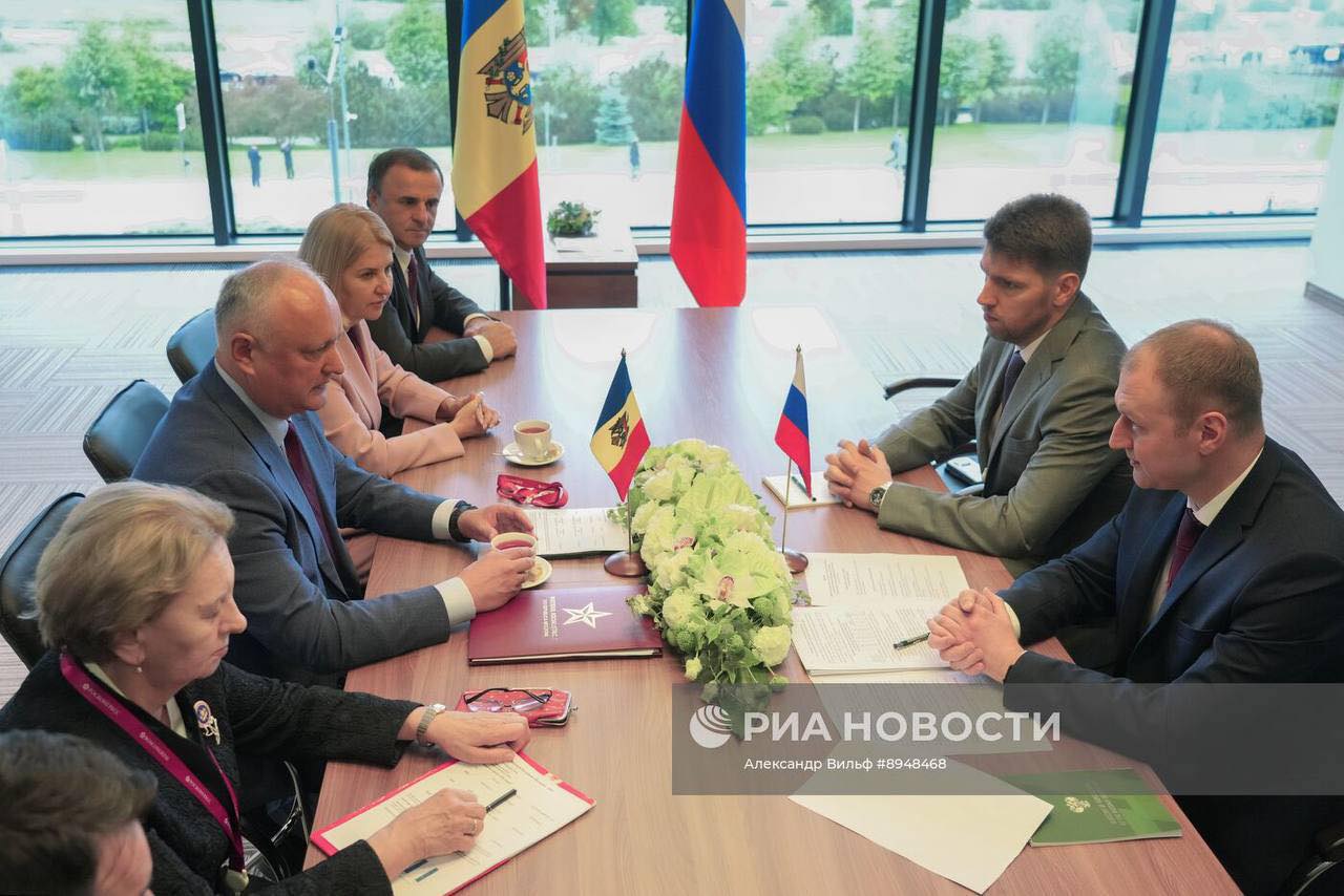 Председатель Партии социалистов Республики Молдова Игорь Додон провел сегодня встречу с заместителем министра сельского хозяйства Российской Федерации Андреем Разиным на полях Петербургского международного экономического форума ПМЭФ-2025.