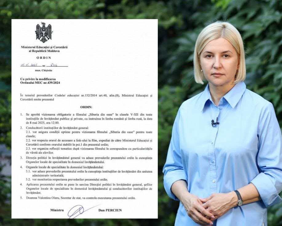 Ирина Влах, председатель Республиканской Партии «Inima Moldovei», «возмущена скандальным приказом Министерства образования, который обязывает показать в школах накануне 9 мая пропагандистский фильм о депортациях в Сибирь».