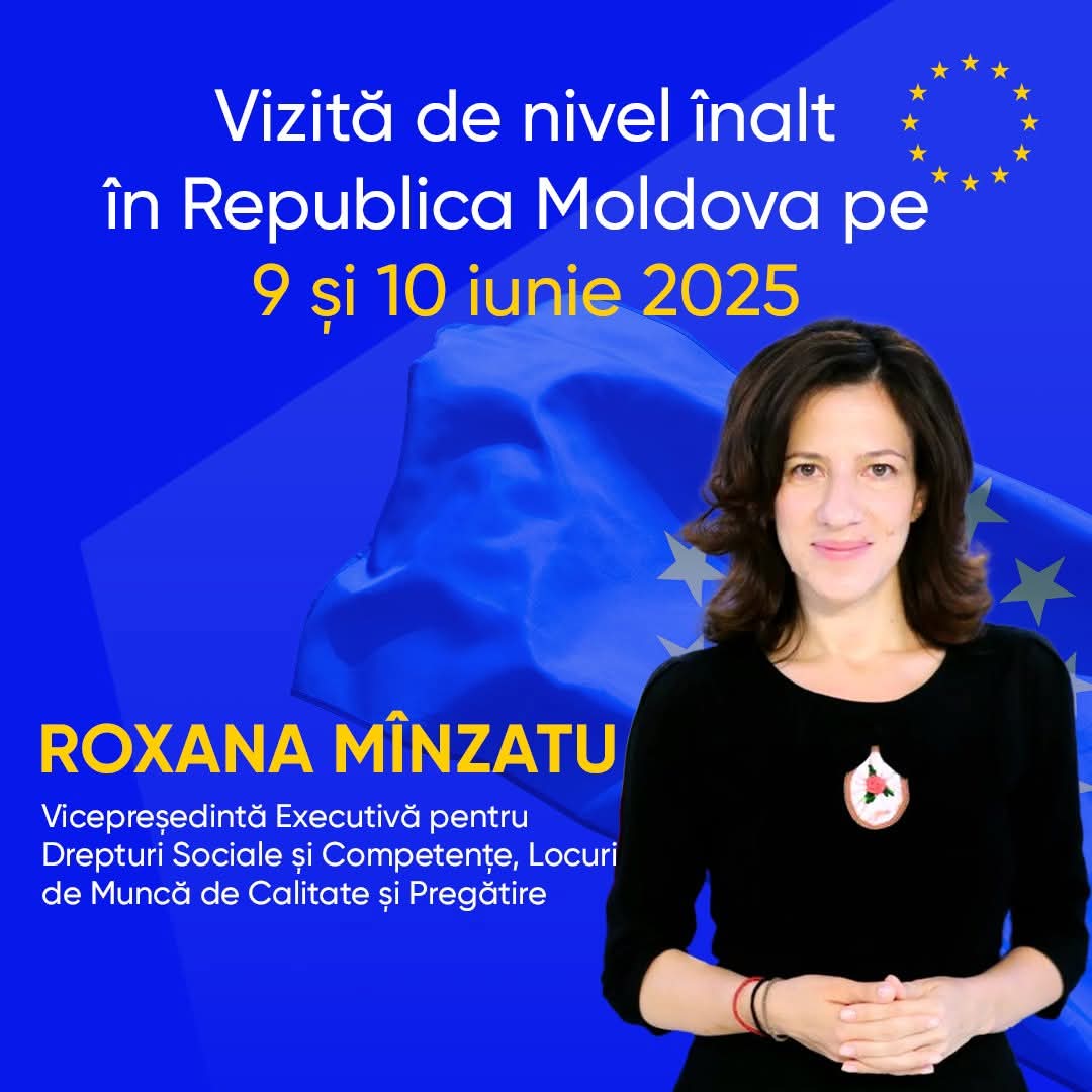 Исполнительный вице-президент Европейской комиссии Роксана Минзату находится в Республике Молдова 9 и 10 июня с официальным визитом, посвященным социальным правам, образованию и занятости.