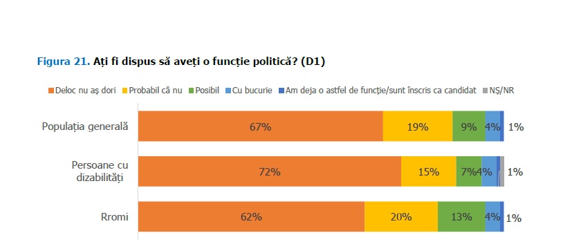 Готовность населения занимать политические должности в процентном выражении можно оценить как низкую, поскольку только 4% твердо заявили, что хотели бы этого — таковы результаты исследования, опубликованного ПРООН.