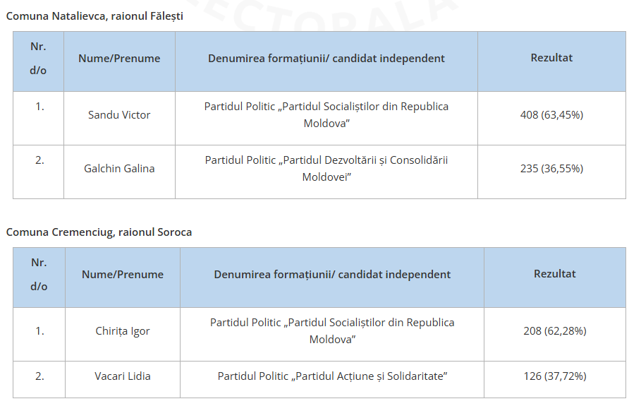 • коммуна Кэлинешть Фалештского района — 1 635 избирателей (41,24%);