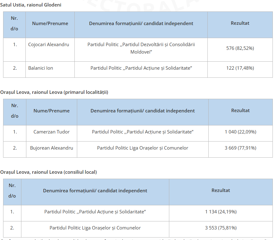 • город Леова Леовского района — 4 789 избирателей (38,50%).