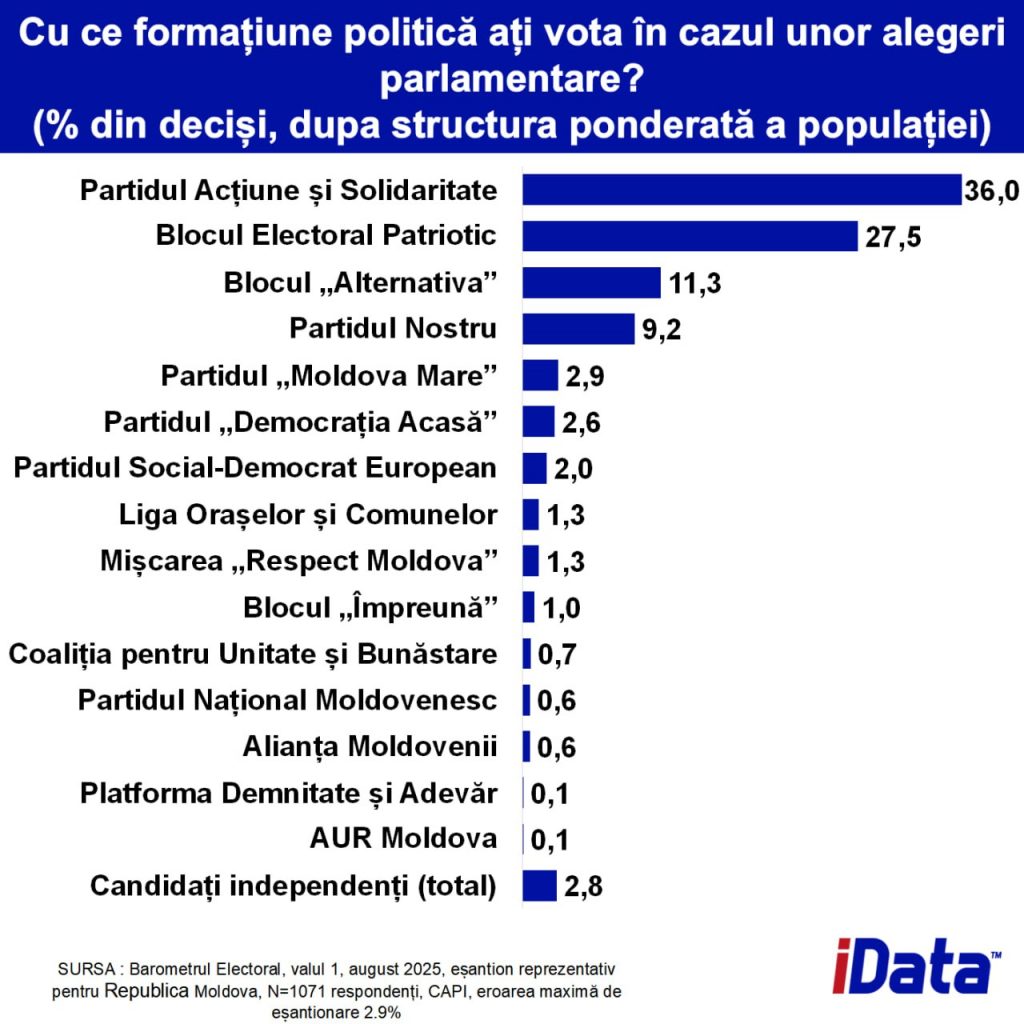 Партия «Действие и Солидарность» получила бы 36,0% голосов избирателей.