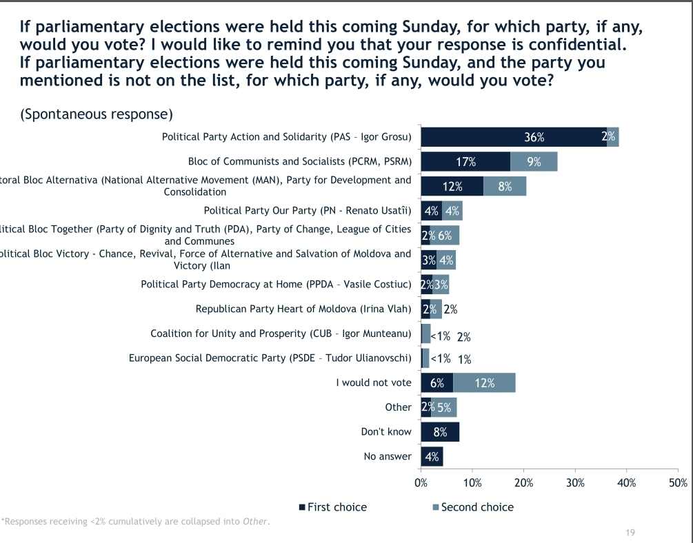 Партия «Действие и солидарность» набрала бы 36% голосов.