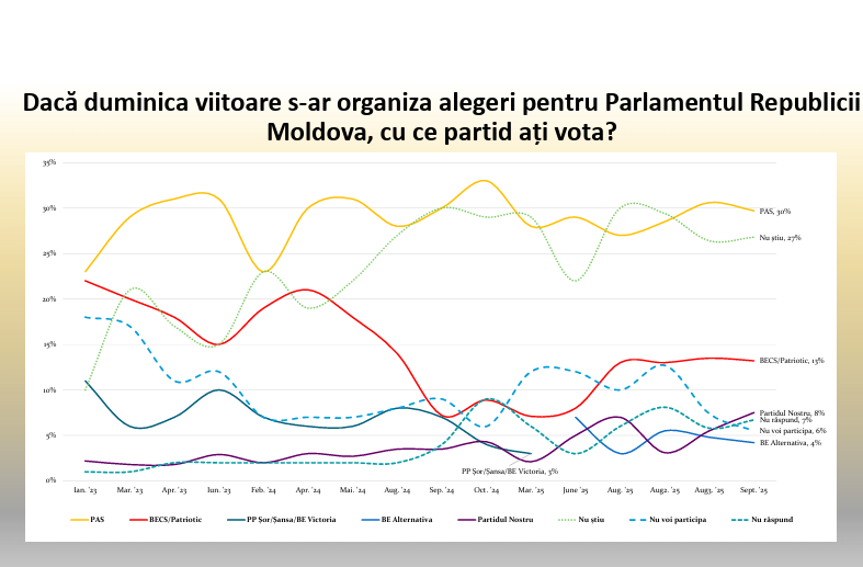 Опрос был проведён на выборке из 1127 человек, репрезентативной для взрослого населения Республики Молдова. Максимальная погрешность составляет ±2,9%. Сбор данных проходил в период с 6 по 13 сентября 2025 года.