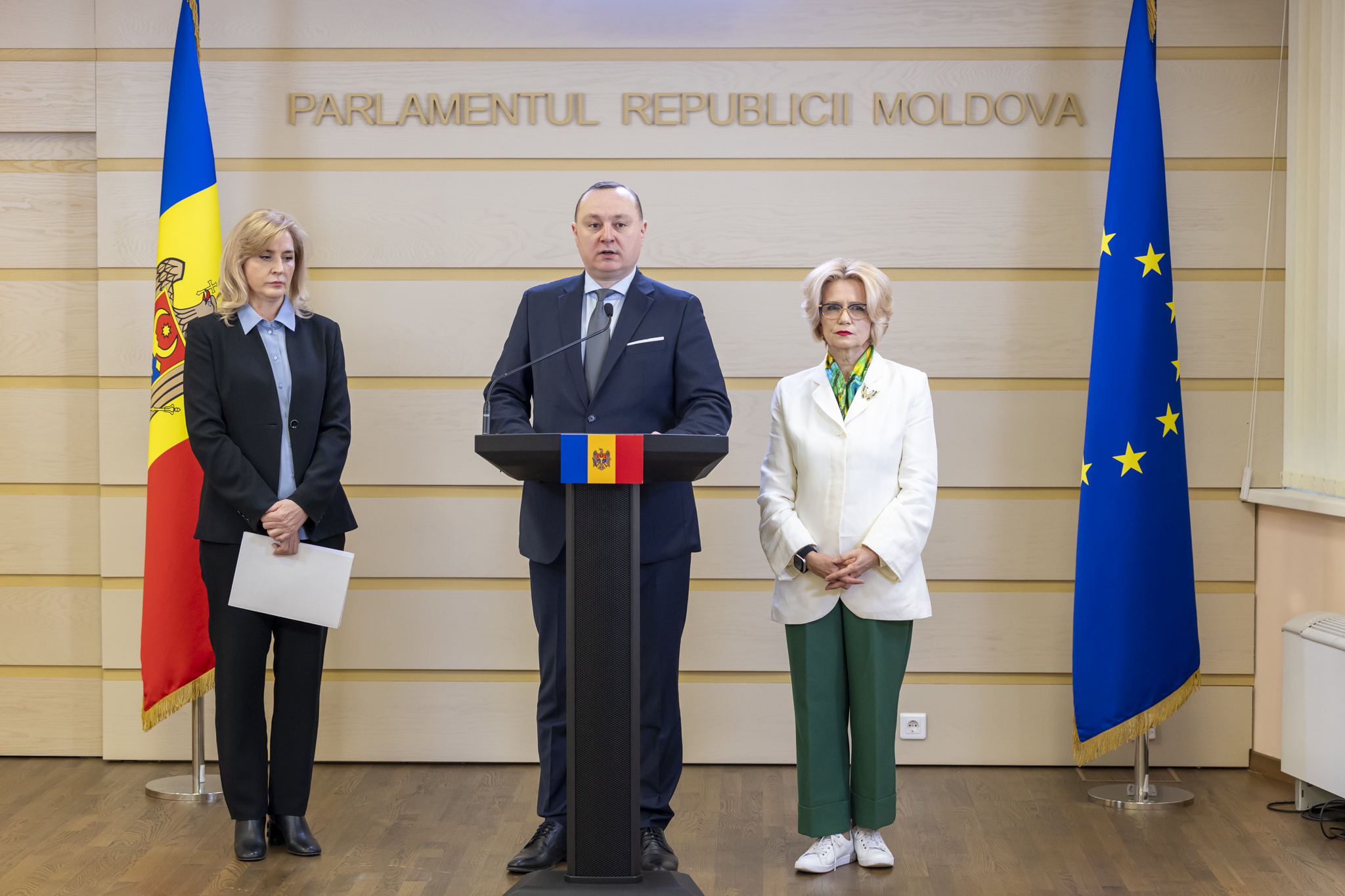 Bице-спикер парламента от ПСРМ Влад Батрынча, депутаты ПСРМ Алла Пилипецкая и Алла Дарованная представили инициативы ПСРМ по альтернативному бюджету на 2026 год в области развития сельской местности и децентрализации местного самоуправления.