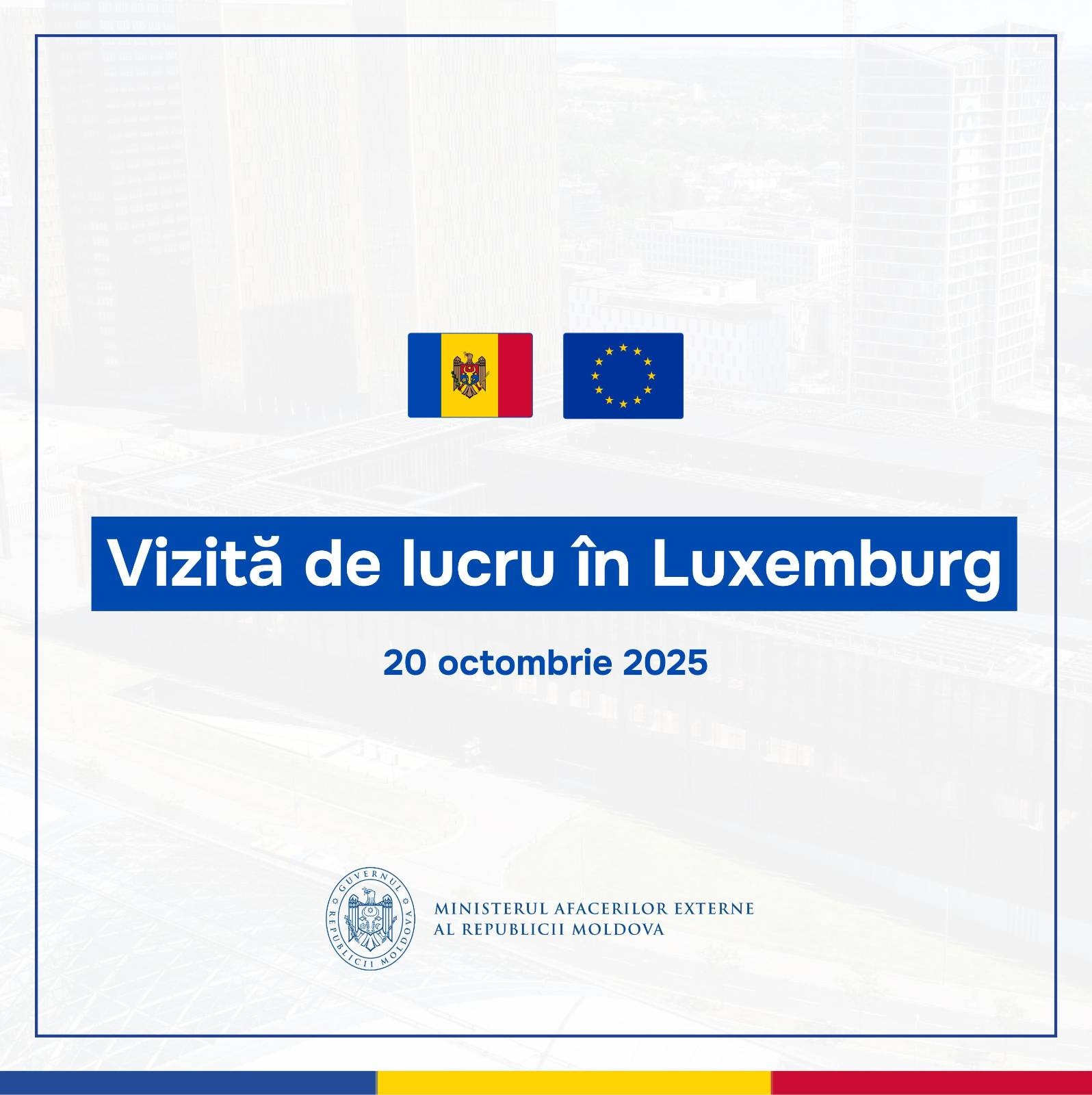 • Șeful diplomației Republicii Moldova va întreprinde o vizită de lucru la Luxemburg pe linia cooperării cu Uniunea Europeană 20 octombrie 2025
