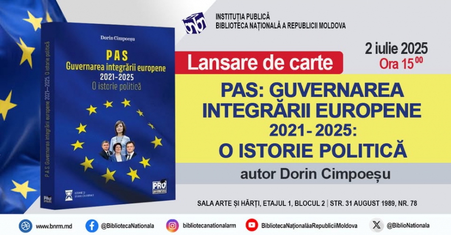 Biblioteca Națională a Republicii Moldova a anunțat că va găzdui lansarea volumului „PAS: Guvernarea integrării europene 2021-2025: o istorie politică”, semnat de dr., prof.univ. Dorin Cimpoeșu, reputat istoric și cadru didactic, recunoscut pentru contribuțiile sale valoroase în cercetarea istoriei politice recente a Republicii Moldova.