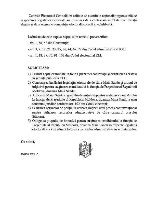 Vasile Bolea, plângere la CEC: Se utilizează resursele administrative în favoarea Maiei Sandu