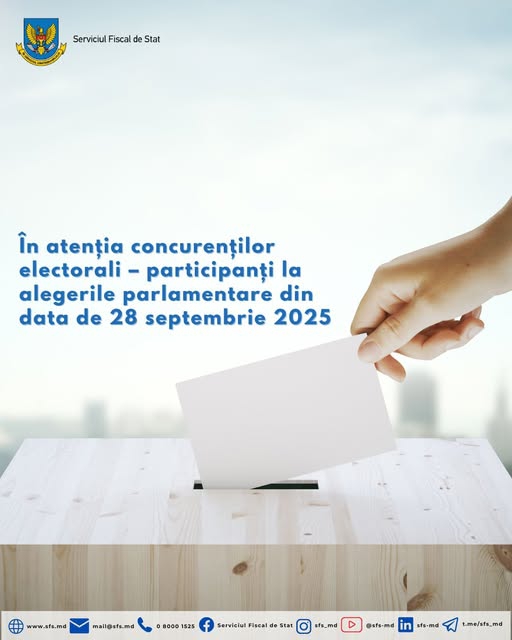 Pentru a participa la alegerile parlamentare din data de 28 septembrie 2025, concurenții electorali înregistrați de Comisia Electorală Centrală a Republicii Moldova, cu excepția partidelor politice, urmează să fie luați la evidență fiscală de către Serviciul Fiscal de Stat.