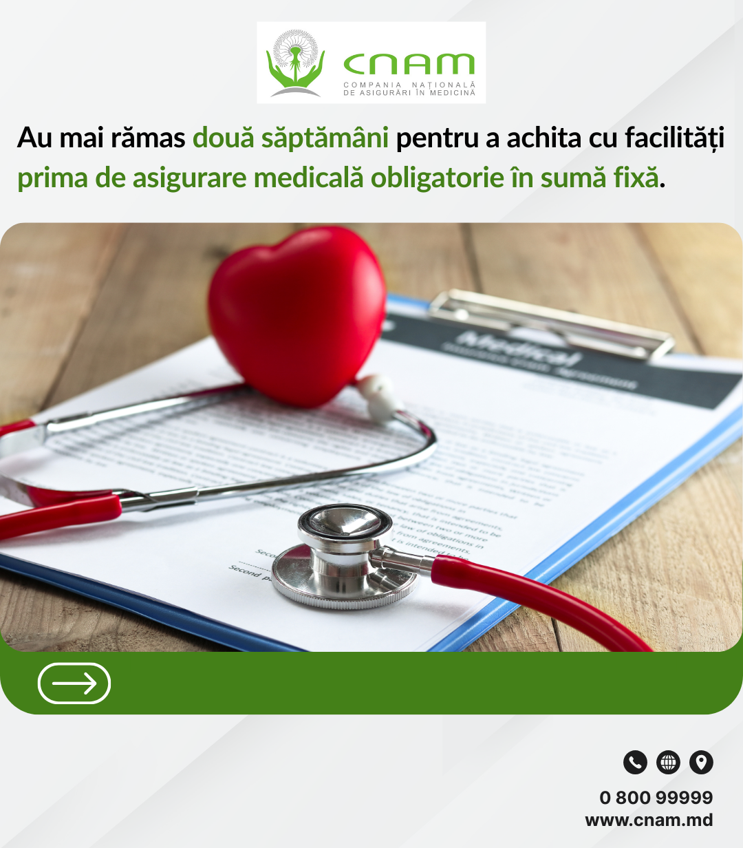 Persoanele care se asigură în mod individual mai au la dispoziție două săptămâni pentru a achita cu facilități prima de asigurare obligatorie de asistenţă medicală în sumă fixă pentru anul 2026.