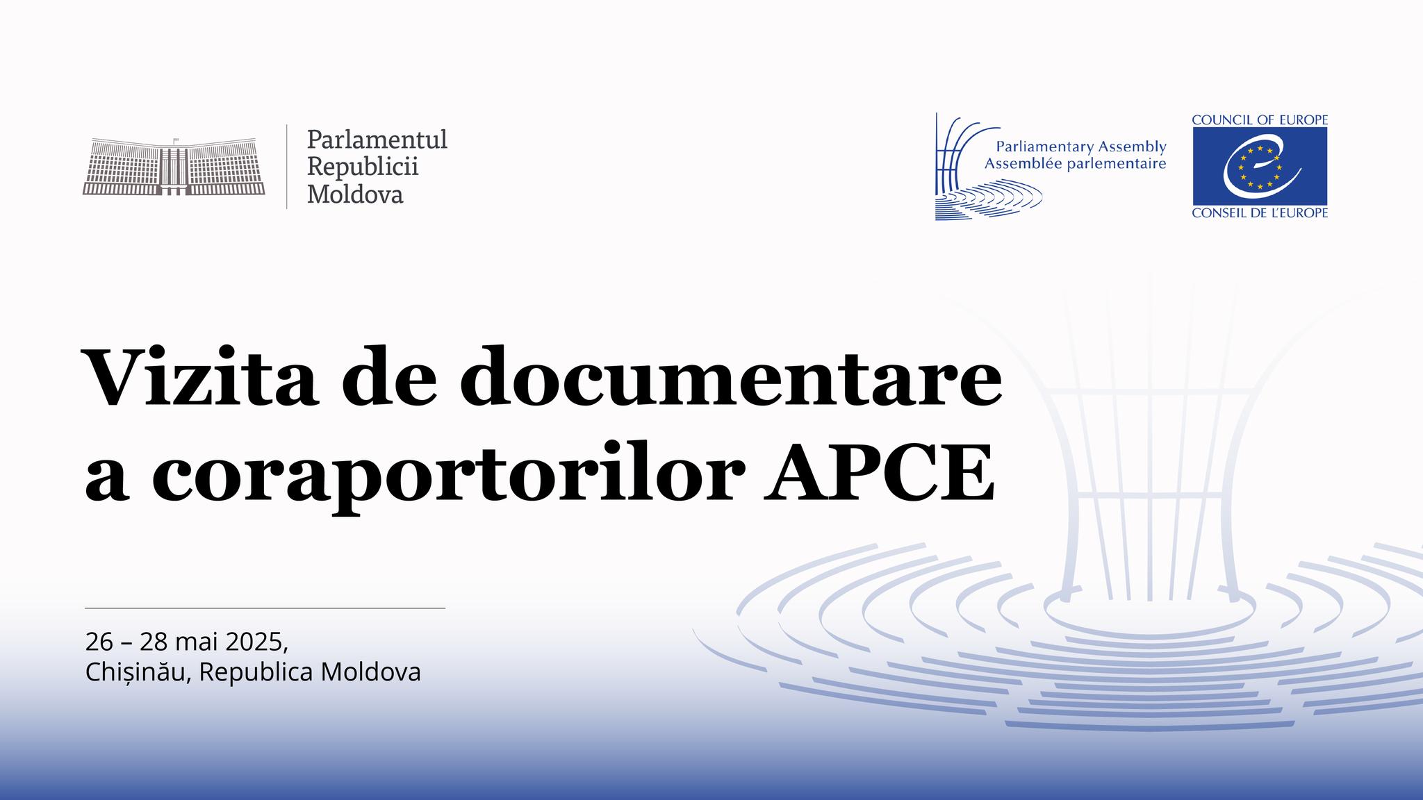 Coraportorii pentru onorarea obligațiunilor și angajamentelor de către Republica Moldova ai Comisiei de Monitorizare a Adunării Parlamentare a Consiliului Europei (APCE) efectuează o vizită de documentare în țara noastră. Oficialii APCE, Pierre-Alain Fridez și Zanda Kalniņa-Lukaševica, se vor afla în Republica Moldova în perioada 26 – 28 mai.