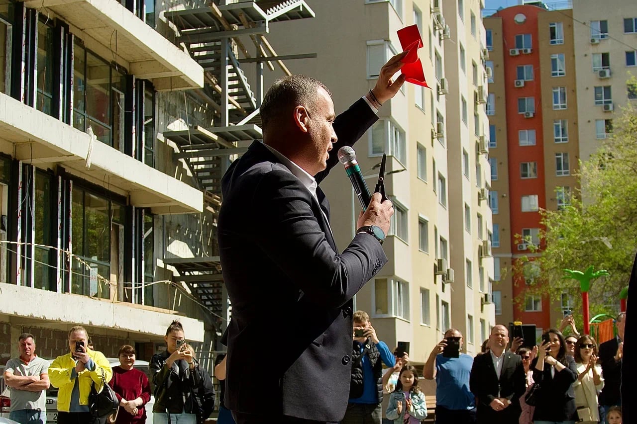 După aproape 10 ani de așteptare, sute de familii, care au investit în proiectul imobiliar „Palmieri şi Stele” din sectorul Ciocana, și-au primit ieri, oficial, cheile de la apartamente. Într-un cadru festiv, alături de locatari, administratorul Ruslan Vasiliev a tăiat panglica de la intrarea în bloc.