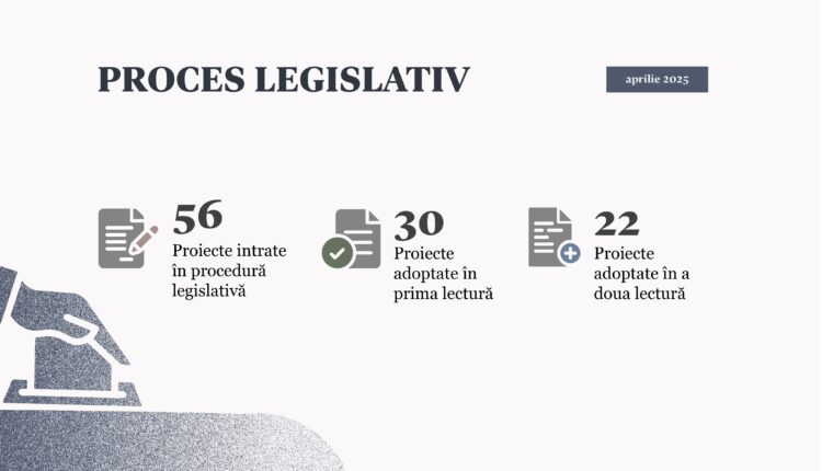 În luna aprilie Parlamentul s-a întrunit în cinci ședințe plenare și a adoptat 22 de acte normative. Este vorba despre 18 legi și patru hotărâri.