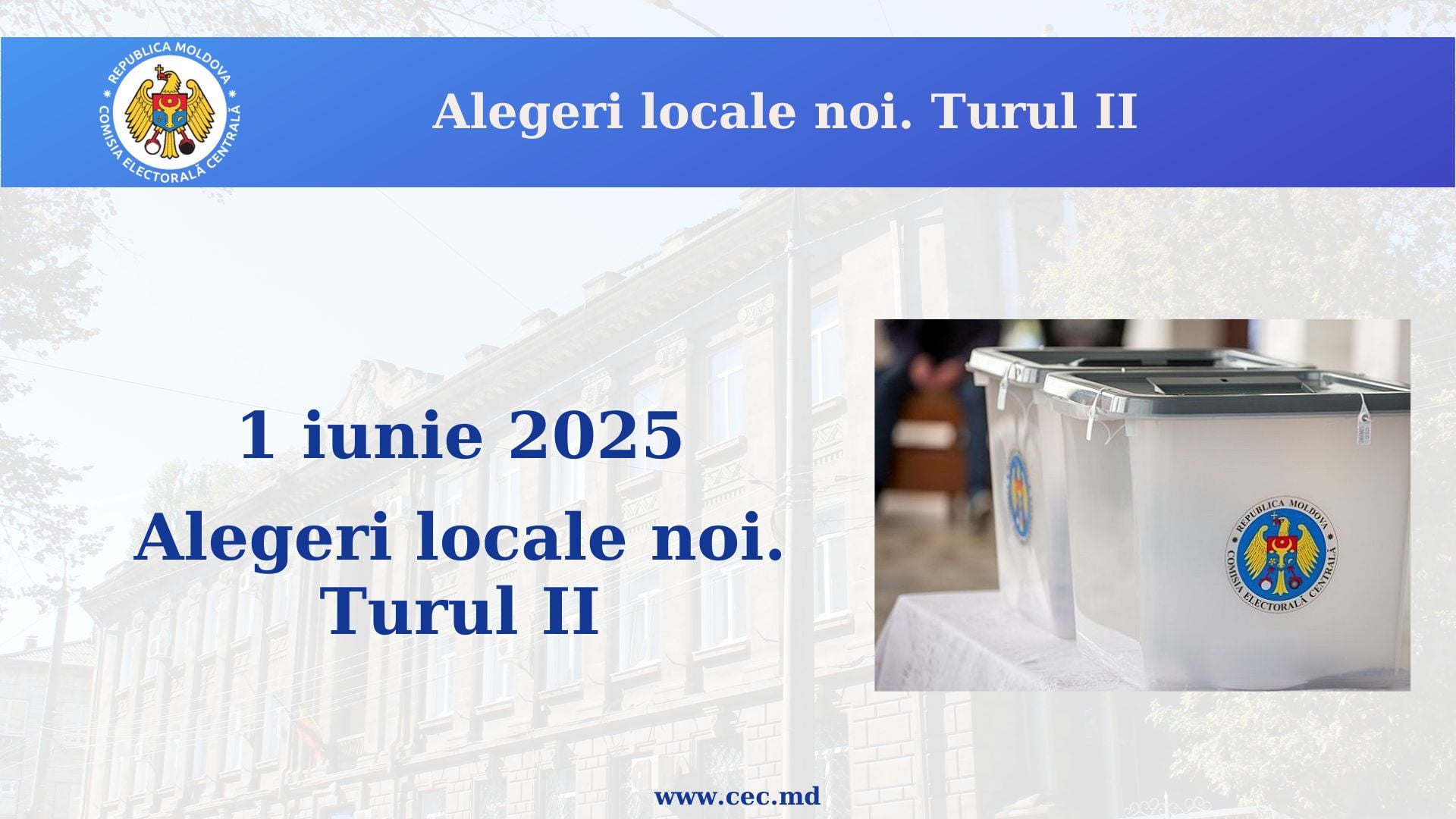Comisia Electorală Centrală a stabilit, în cadrul ședinței de astăzi, organizarea pe 1 iunie 2025 a turului II al alegerilor locale noi pentru funcția de primar în comuna Boldurești, raionul Nisporeni, satul Tabani, raionul Briceni, comuna Chiperceni, raionul Orhei și satul Talmaza, raionul Ștefan Vodă.