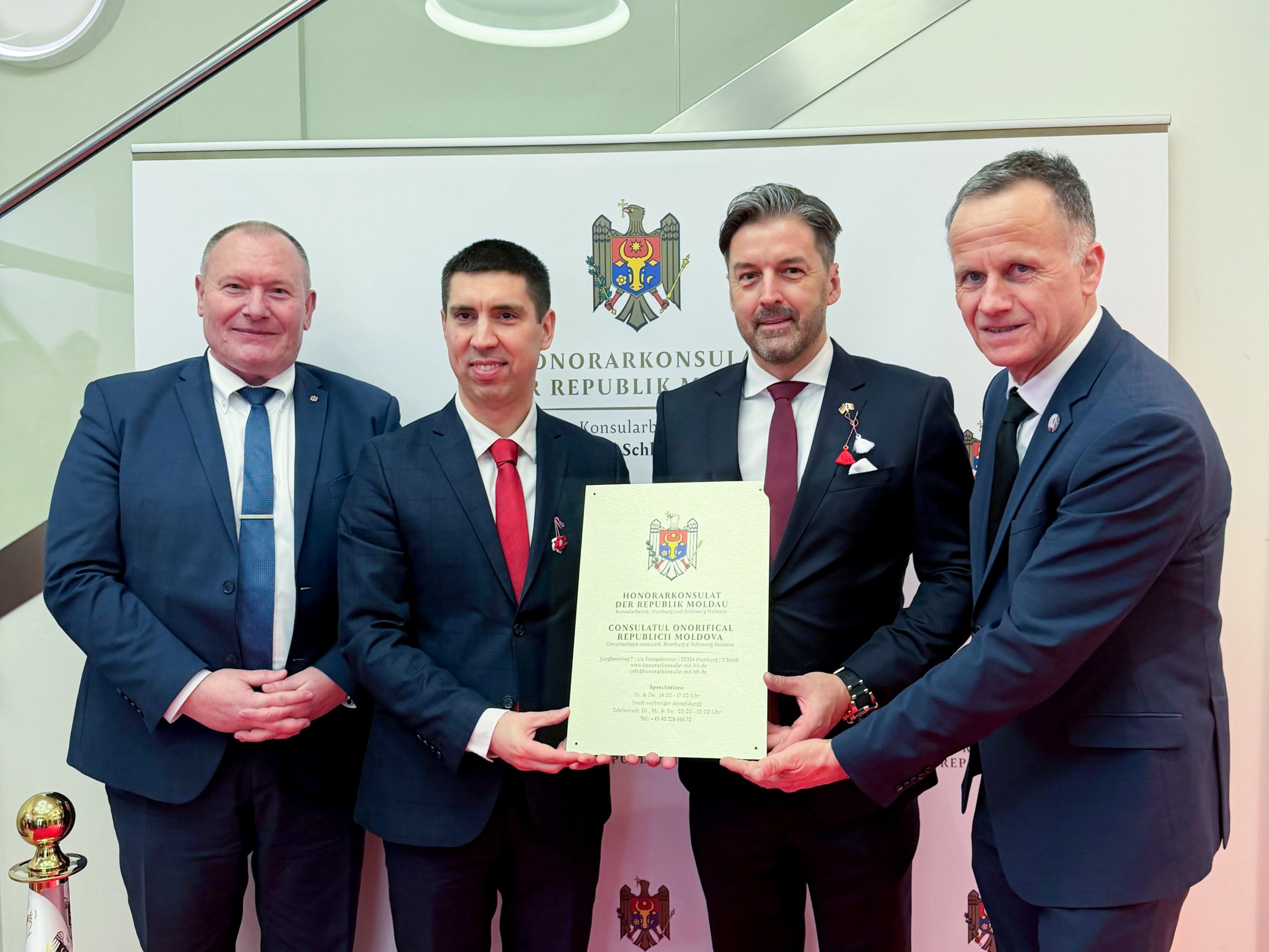 La ceremonia de inaugurare, organizată cu implicarea asociațiilor diasporei din Hamburg, au participat reprezentanți ai autorităților locale, ai mediului de afaceri, membri ai corpului consular și ai comunității moldovenești. Cu acest prilej, tuturor celor prezenți le-au fost oferite mărțișoare – simbol al tradiției și identității noastre – gest care a evidențiat rolul activ al diasporei în promovarea culturii și tradițiilor Republicii Moldova.