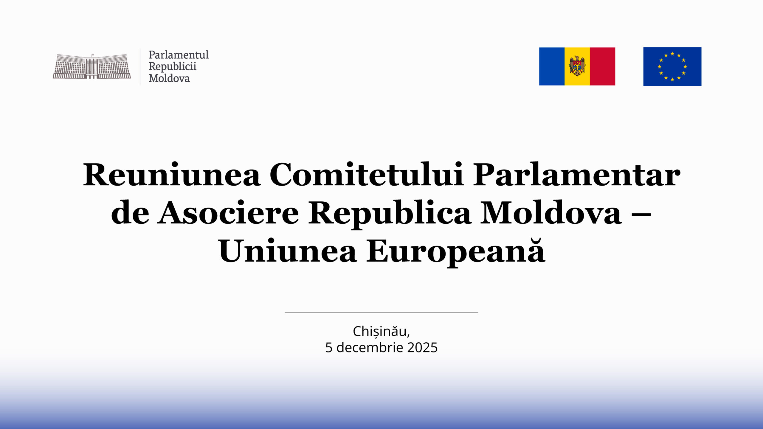 Parlamentul va găzdui cea de-a XVI-a reuniune a Comitetului Parlamentar de Asociere Republica Moldova – Uniunea Europeană (CPA RM-UE). Evenimentul va avea loc vineri, 5 decembrie și va fi coprezidat de președintele Comisiei parlamentare pentru integrare europeană, Marcel Spatari, și europarlamentarul Siegfried Mureșan.