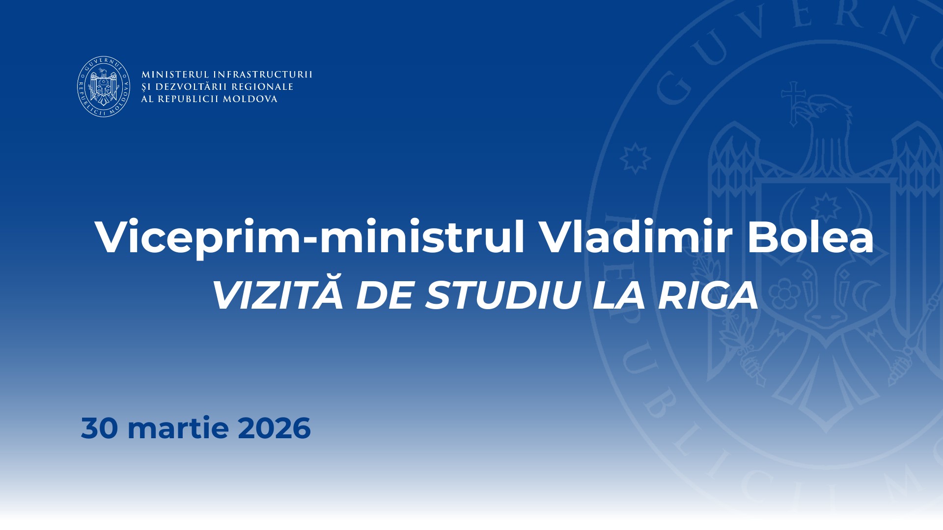 O delegație a Ministerului Infrastructurii și Dezvoltării Regionale, condusă de viceprim-ministrul Vladimir Bolea, efectuează, în perioada 30 martie-2 aprilie, o vizită de studiu în Letonia, dedicată modernizării și eficientizării sistemului de transport rutier de pasageri.