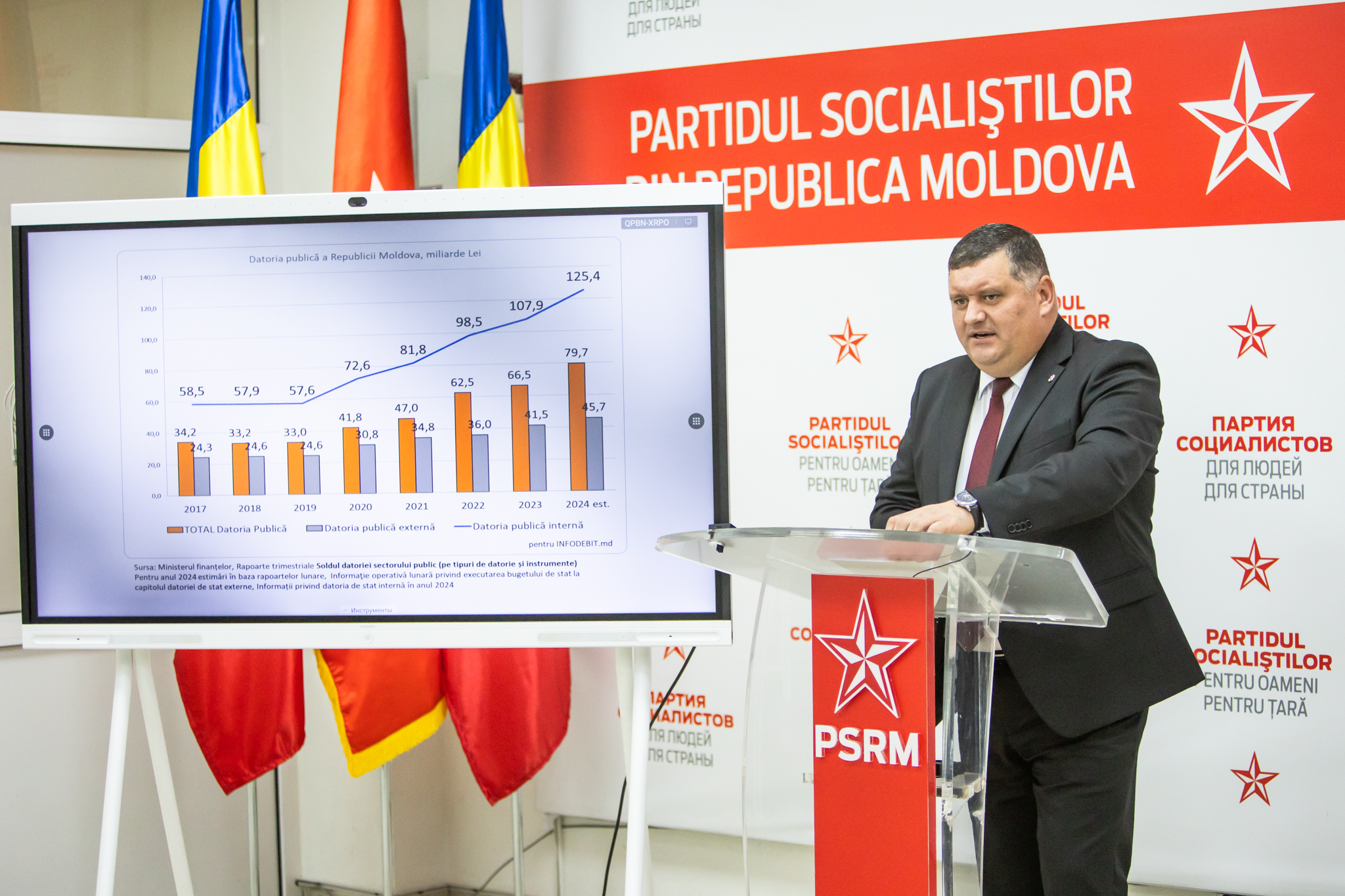 Deputatul a atras atenția asupra faptului că politica bugetar-fiscală promovată de PAS, ale cărui guverne au cheltuit în ultimii patru ani 50 de miliarde de lei împrumuturi în special pentru acoperirea deficitului bugetar și a cheltuielilor curente, a dus la o criză economică și socială profundă.