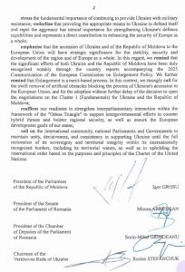 Președinții Parlamentelor din Republica Moldova, România și Ucraina au semnat o declarație comună de sprijin pentru Ucraina și integrarea europeană