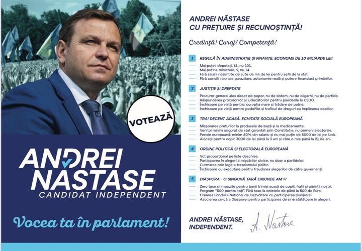 Андрей Нэстасе, независимый кандидат на должность депутата, в начале избирательной кампании заявил, что баллотируется таким, какой он есть — «свободным, честным, решительным. Это самый правильный способ заниматься политикой в стране, где люди больше не доверяют партиям».