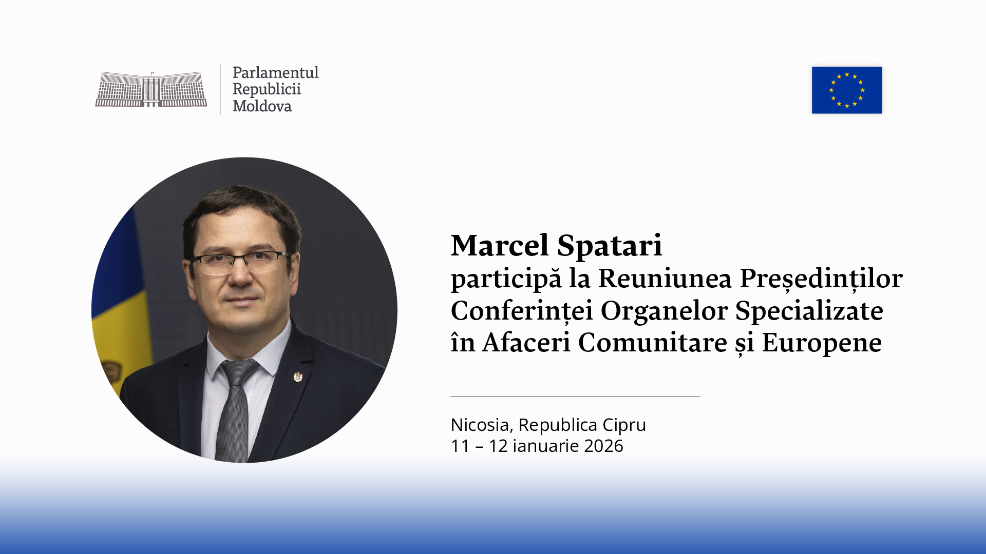 Председатель Комиссии по европейской интеграции Марчел Спатарь принимает участие в заседании председателей Конференции специализированных органов по вопросам общеевропейских и европейских дел (COSAC). Мероприятие проходит с 11 по 12 января в Республике Кипр.