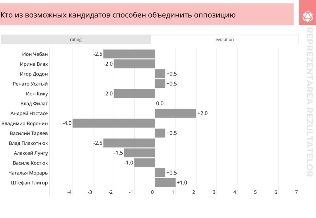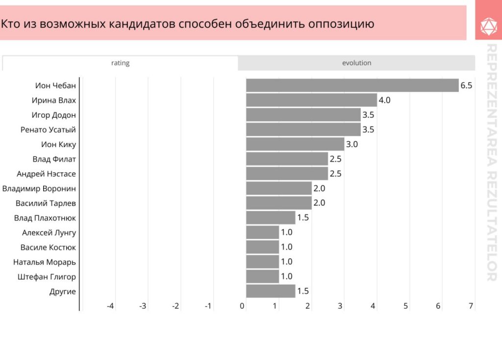 Исследование Intellect Group выявило, что Майя Санду продолжает демонстрировать высокую политическую активность и пользуется значительной поддержкой. Среди оппозиционных лидеров наиболее активными и способными объединить оппозицию являются Ион Чебан, Ирина Влах и Игорь Додон, несмотря на некоторые потери в рейтинге. Электорат Игоря Додона и Ренато Усатого остается поляризованным, что затрудняет политическое развитие активности этих лидеров. Ирина Влах и Андрей Нэстасе нуждаются в активизации своих политических кампаний и укреплении поддержки и узнаваемости среди избирателей в качестве потенциальных кандидатов.