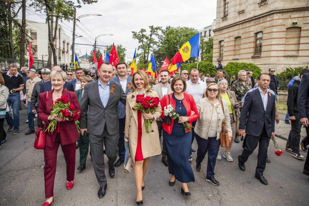 В первых рядах колонны шли руководители Партии социалистов Республики Молдова, депутаты парламента, представители территориальных организаций ПСРМ со всей страны, активисты «Молодой гвардии».