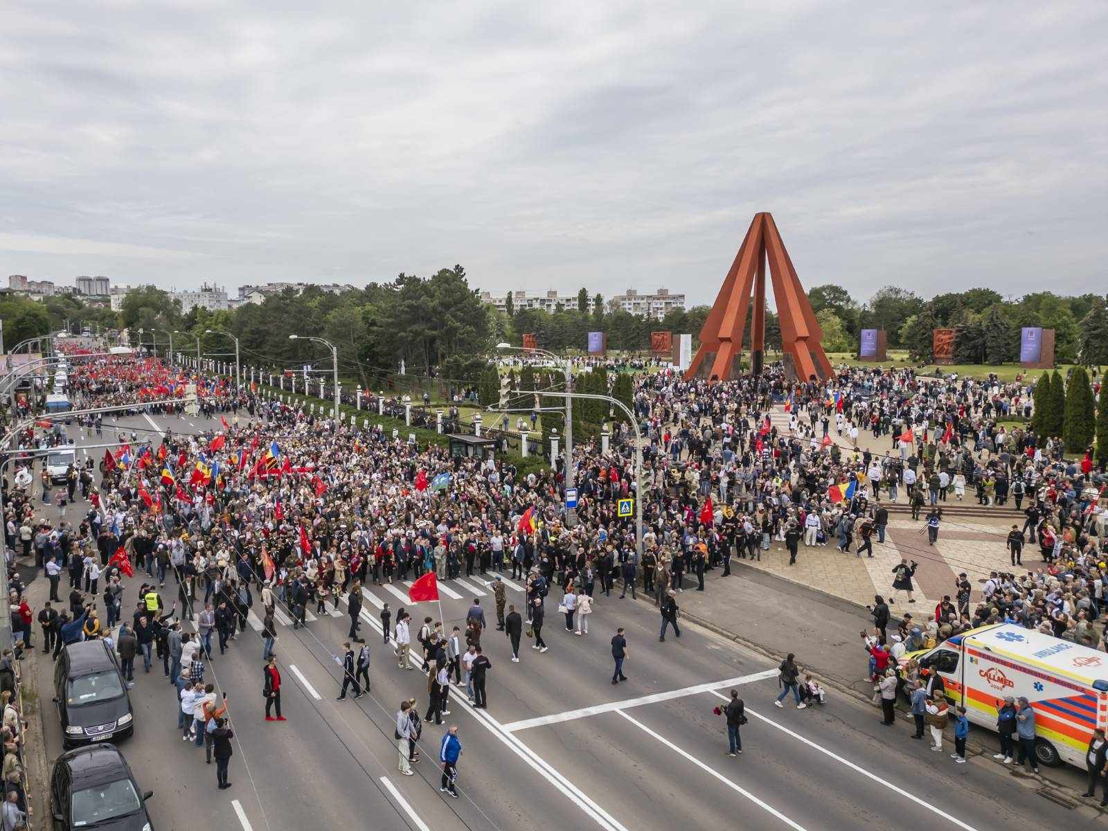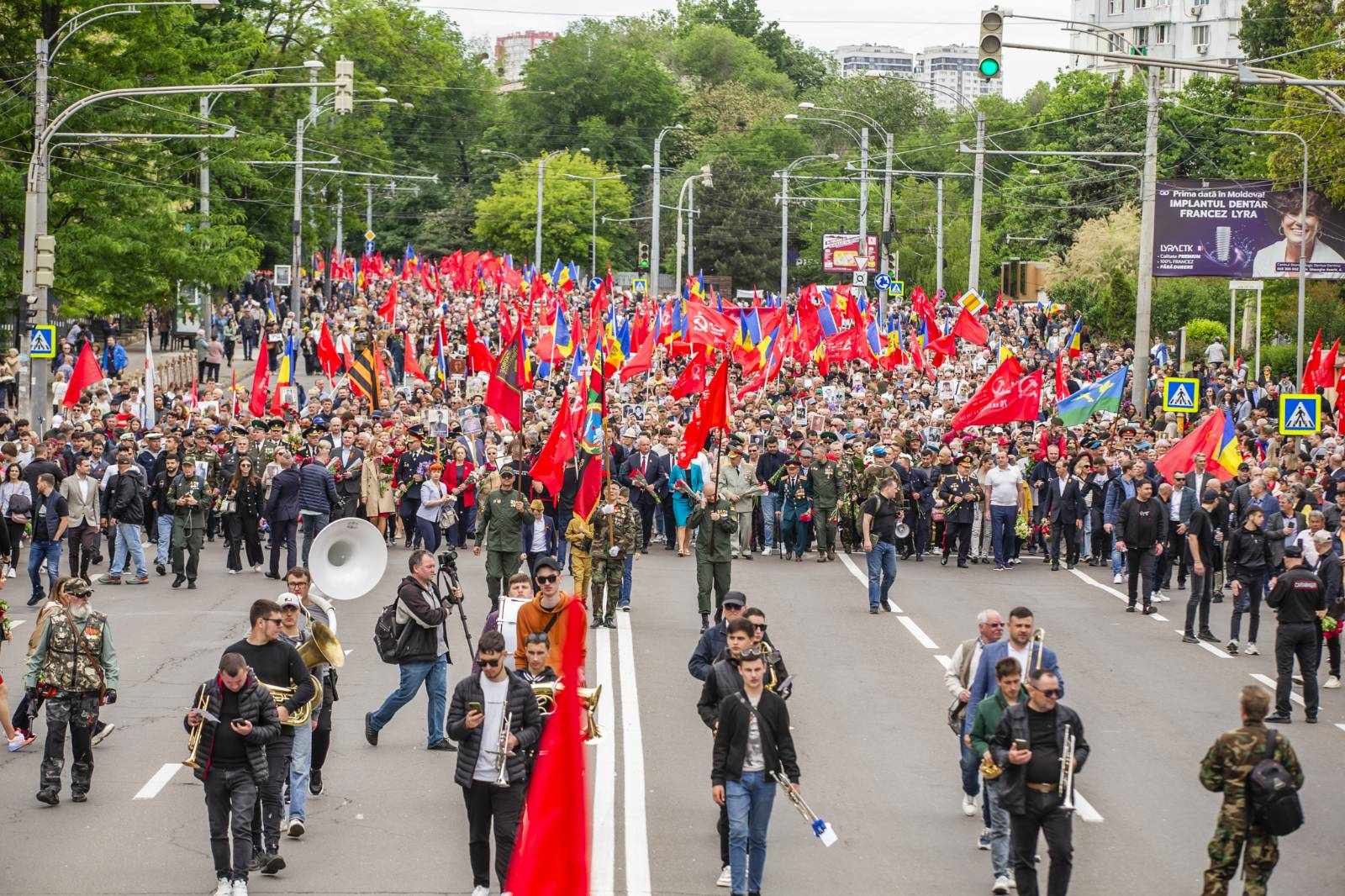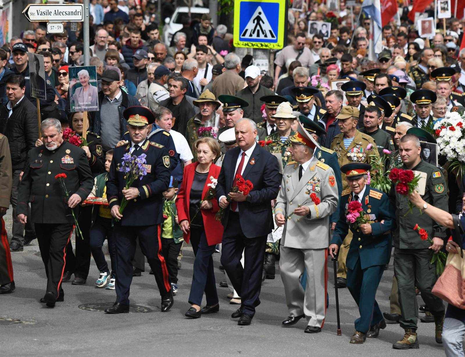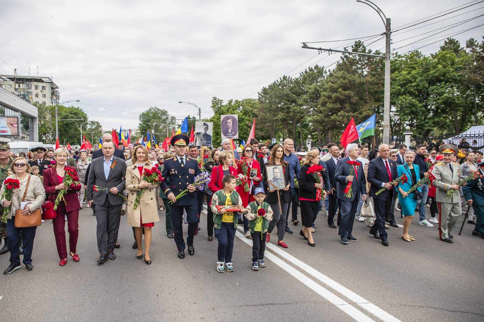 С флагами Республики Молдова, красными флагами Победы, портретами героических предков жители Молдовы прошли маршем, почтив память миллионов героев, отдавших свои жизни за мир и свободу в том числе нашей страны.