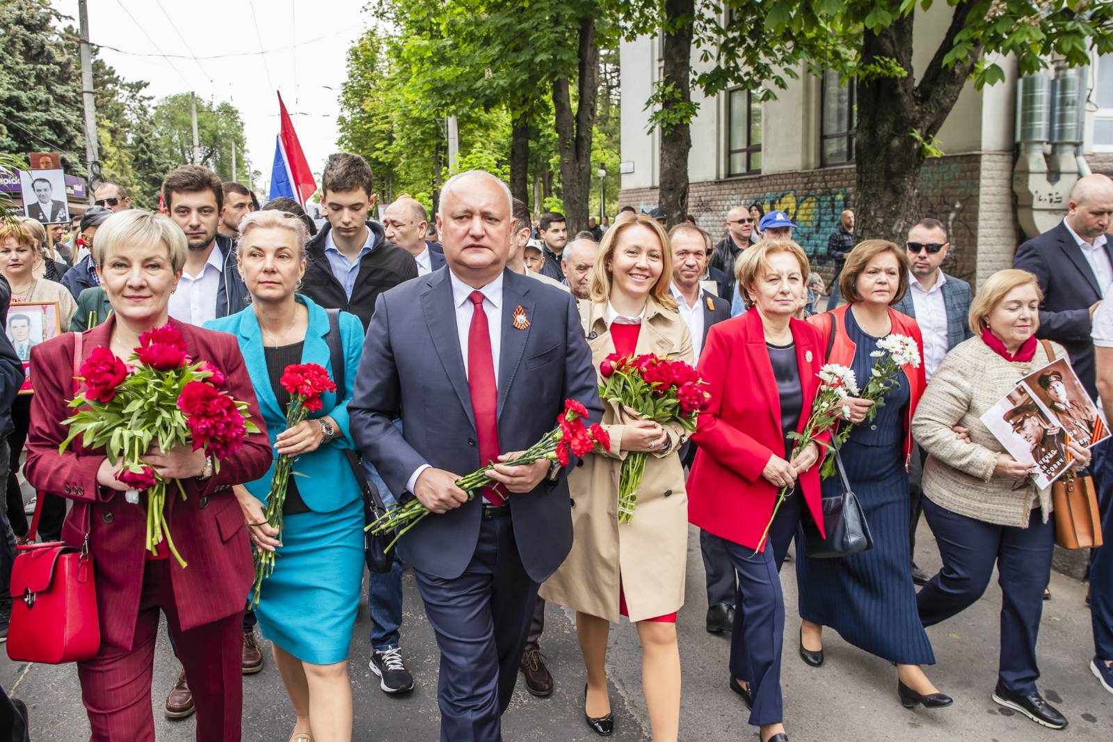 В первых рядах колонны шли руководители Партии социалистов Республики Молдова, депутаты парламента, представители территориальных организаций ПСРМ со всей страны, активисты «Молодой гвардии».