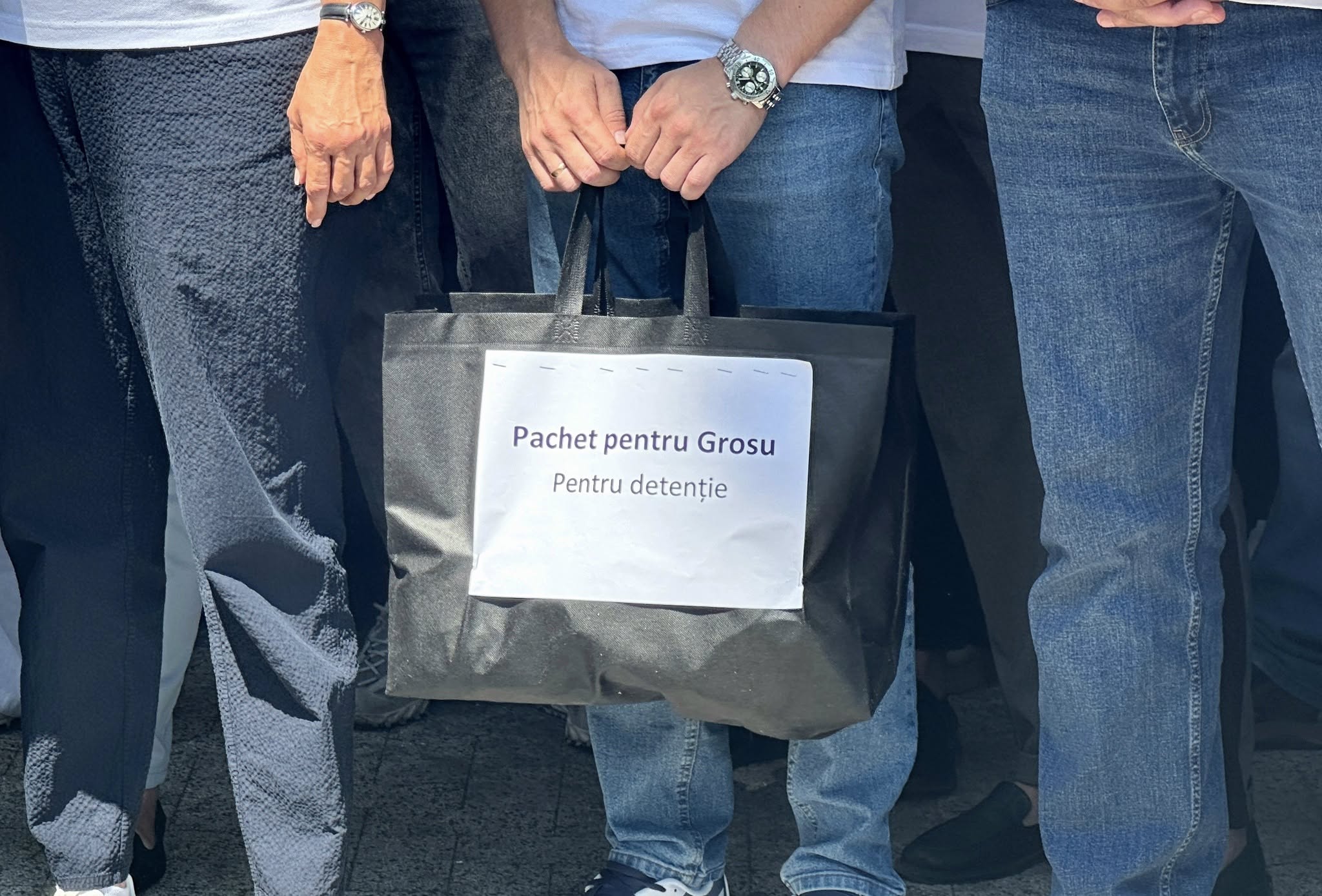 Участники акции выразили уверенность, что после 28 сентября Гросу понесет заслуженное наказание и передали ему пакет сухарей, чай, сигареты и тапочки — вещи, которые вскоре окажутся для него очень востребованными.
